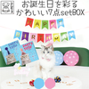 ・お誕生日を彩るかわいい7点セットボックス。愛猫のお誕生日をかわいく飾りつけしてお祝いできる、POPでかわいいアイテムがぎっしり詰まったパーティーグッズセットです。