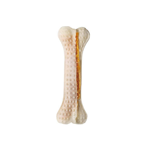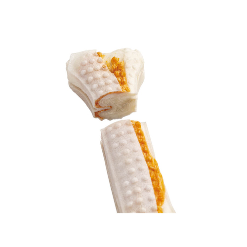 牛皮の中にササミを挟んでぎゅっと圧縮しているので、おいしさ超長持ち。
