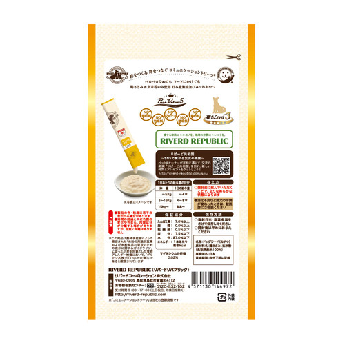 ・鶏ささみ&発芽玄米粉のみ使用した、日本産無添加ぴゅ~れおやつです。