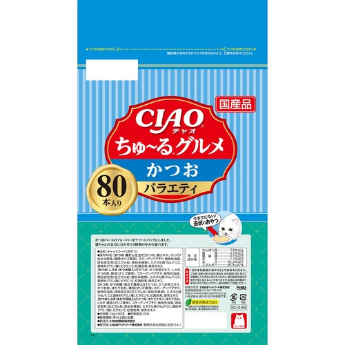 | 素材 | 【まぐろ】まぐろ、糖質(オリゴ糖等)、まぐろエキス、タンパク加水分解物、殺菌乳酸菌、植物性油脂、増粘安定剤(加工でん粉、増粘多糖類)、ミネラル類(Na、P、Cl)、調味料(アミノ酸)、ミルクカルシウム、ビタミンE、紅麹色素、緑茶エキス 【まぐろ海鮮ミックス味】まぐろ、ほたてエキス、かつお節エキス、糖類(オリゴ糖等)、まぐろエキス、殺菌乳酸菌、植物性油脂、増粘安定剤(加工でん粉、増粘多糖類)、ミネラル類(Na、P、Cl)、調味料(アミノ酸)、ミルクカルシウム、ビタミンE、紅麹色素、緑茶エキス 【かつお】かつお、かつお節エキス、糖類(オリゴ糖等)、殺菌乳酸菌、植物性油脂、増粘安定剤(加工でん粉、増粘多糖類)、ミネラル類(Na、P、Cl)、調味料(アミノ酸)、ミルクカルシウム、ビタミンE、紅麹色素、緑茶エキス 【とりささみ 】鶏肉(ささみ)、ほたてエキス、糖類(オリゴ糖等)、殺菌乳酸菌、植物性油脂、増粘安定剤(加工でん粉、増粘多糖類)、ミネラル類(Na、P、Cl)、調味料(アミノ酸)、ミルクカルシウム、ビタミンE、紅麹色素、緑茶エキス |
