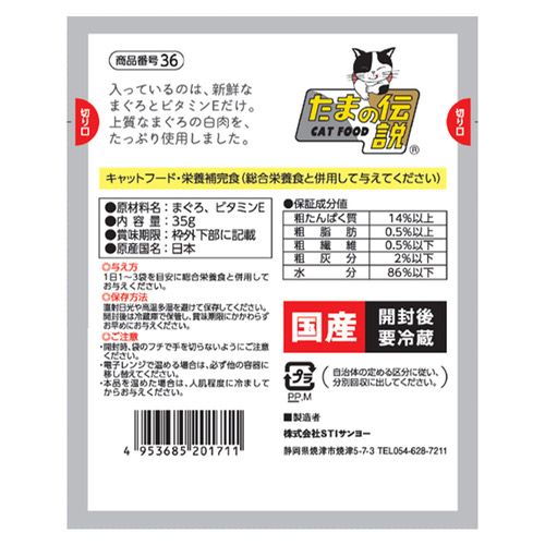 入っているのは新鮮なまぐろとビタミンEだけ。上質なまぐろの白肉を、たっぷり使用しました。