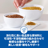 | 素材 | 米、トリ肉(チキン、ターキー)、コーングルテン、トウモロコシ、動物性油脂、全卵、ビートパルプ、ポークエキス、植物性油脂、亜麻仁、ミネラル類(カルシウム、ナトリウム、カリウム、クロライド、銅、鉄、マンガン、セレン、亜鉛、イオウ、ヨウ素)、乳酸、ビタミン類(A、B1、B2、B6、B12、C、D3、E、ベータカロテン、ナイアシン、パントテン酸、葉酸、ビオチン、コリン)、アミノ酸類(タウリン、メチオニン)、酸化防止剤(ミックストコフェロール、ローズマリー抽出物、緑茶抽出物) |