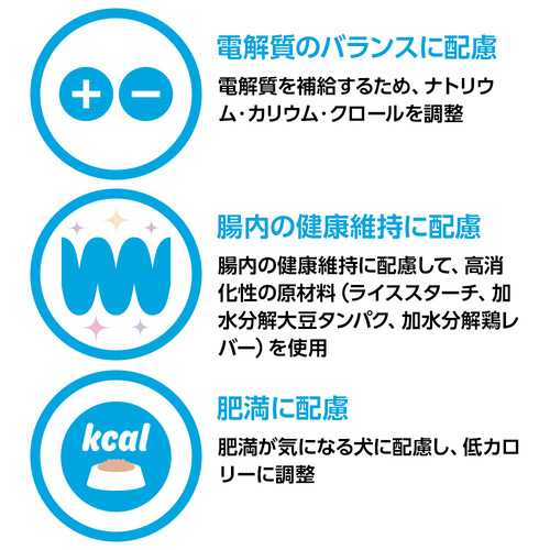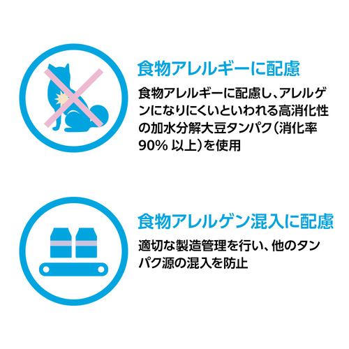 | 素材 | ライススターチ、加水分解大豆タンパク※1、油脂類(動物性油脂(鶏)、魚油、大豆油)、加水分解鶏レバー※2、ミネラル類(K、Ca、Cl、P、Na、Zn、Fe、Mn、Cu、I、Se)、植物性繊維※3、アミノ酸類(DL-メチオニン、L-チロシン、L-リジン、タウリン)、ビタミン類(コリン、E、ナイアシン、C、ビオチン、パントテン酸カルシウム、B6、B2、B1、A、葉酸、B12、K3、D3)、フラクトオリゴ糖、サイリウム、ゼオライト、酸化防止剤(ミックストコフェロール、ローズマリーエキス)、マリーゴールドエキス※4 ※1消化率90%以上、※2消化率90%以上、※3セルロース繊維、※4ルテイン源 |