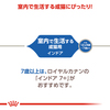 | 素材 | 小麦、米、超高消化性小麦タンパク(消化率90%以上)、肉類(鶏、七面鳥、ダック)、コーン、動物性油脂、小麦粉、植物性繊維、加水分解タンパク(鶏、七面鳥、魚)、ビートパルプ、大豆油、酵母および酵母エキス、魚油(オメガ3系不飽和脂肪酸〔EPA+DHA〕源 )、フラクトオリゴ糖、サイリウム、アミノ酸類(L-リジン、タウリン、DL-メチオニン、L-カルニチン)、ゼオライト、ミネラル類(Ca、Cl、K、Na、P、Zn、Mn、Fe、Cu、I、Se)、ビタミン類(コリン、E、C、ナイアシン、ビオチン、B2、パントテン酸カルシウム、A、B1、B6、B12、葉酸、D3)、酸化防止剤(ミックストコフェロール、ローズマリーエキス) |