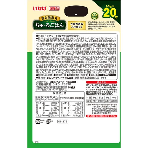 好評のちゅ~るごはんに箱タイプの20本入りが登場。わんちゃんに必要な栄養素をバランスよく配合した総合栄養食。関節、骨、お腹、皮膚の健康に配慮した今までにないごはん。4種類の味が楽しめるバラエティパック。